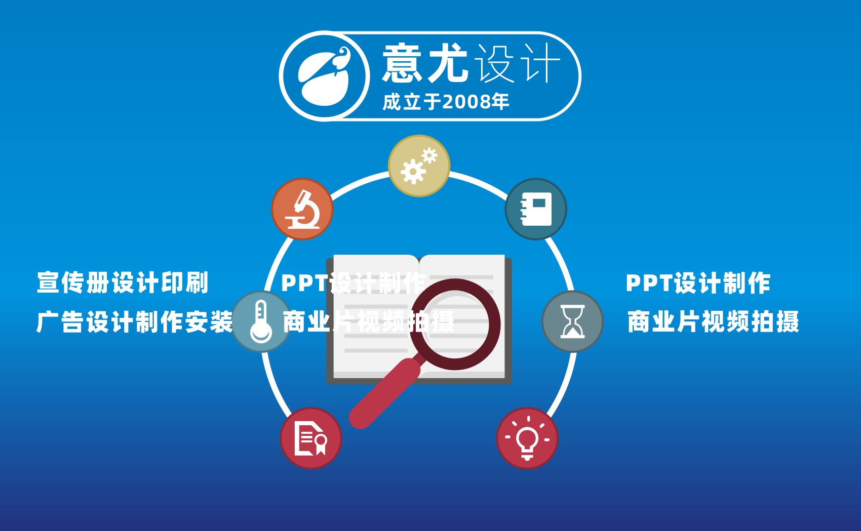 蘇州意尤文化傳播有限公司是一家有著多年廣告設(shè)計經(jīng)驗的蘇州知名廣告企業(yè) 主要業(yè)務(wù)有蘇州PPT設(shè)計、蘇州產(chǎn)品PPT設(shè)計、蘇州企業(yè)PPT設(shè)計、蘇州會議PPT設(shè)計、蘇州項目PPT設(shè)計、企業(yè)VI設(shè)計、設(shè)計印刷宣傳冊/樣本/單頁/名片等 自2007年成立以來,蘇州意尤廣告公司與蘇州及蘇州各市的幾百家中外企業(yè)進行了廣告設(shè)計合作,經(jīng)過多年發(fā)展公司已形成了以企業(yè)PPT設(shè)計、企業(yè)VI設(shè)計,廣告設(shè)計,廣告印刷,樣本設(shè)計,宣傳冊設(shè)計,名片印刷,菜譜制作,單頁,宣傳單等一批特長業(yè)務(wù),相信在各位新老客戶的關(guān)心下,本公司會得到更大的發(fā)展,同時為客戶的發(fā)展宣傳保駕護航。